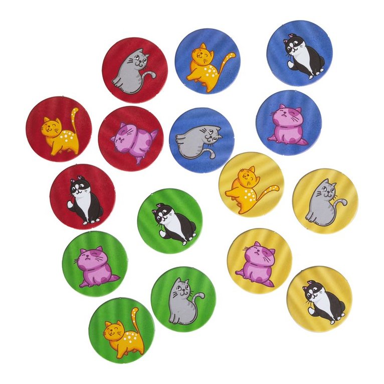 Det klassiska memo-spelet på ett nytt sätt, där man vänder EN bricka i taget! 16 memobrickor läggs ut, en del med färgsidan uppåt och resten med roliga katter. Vid varje spelrunda visas ett runt kattmärke med katt och bakgrundsfärg. Spelarnas uppgift är att hitta exakt rätt kombo av katt och färg, genom att vända en memobricka. Om både färg och katt stämmer, får spelaren kattmärket och den som samlar flest brickor vinner. Kul för hela familjen! 2-4 spelare, 10 min, 5+