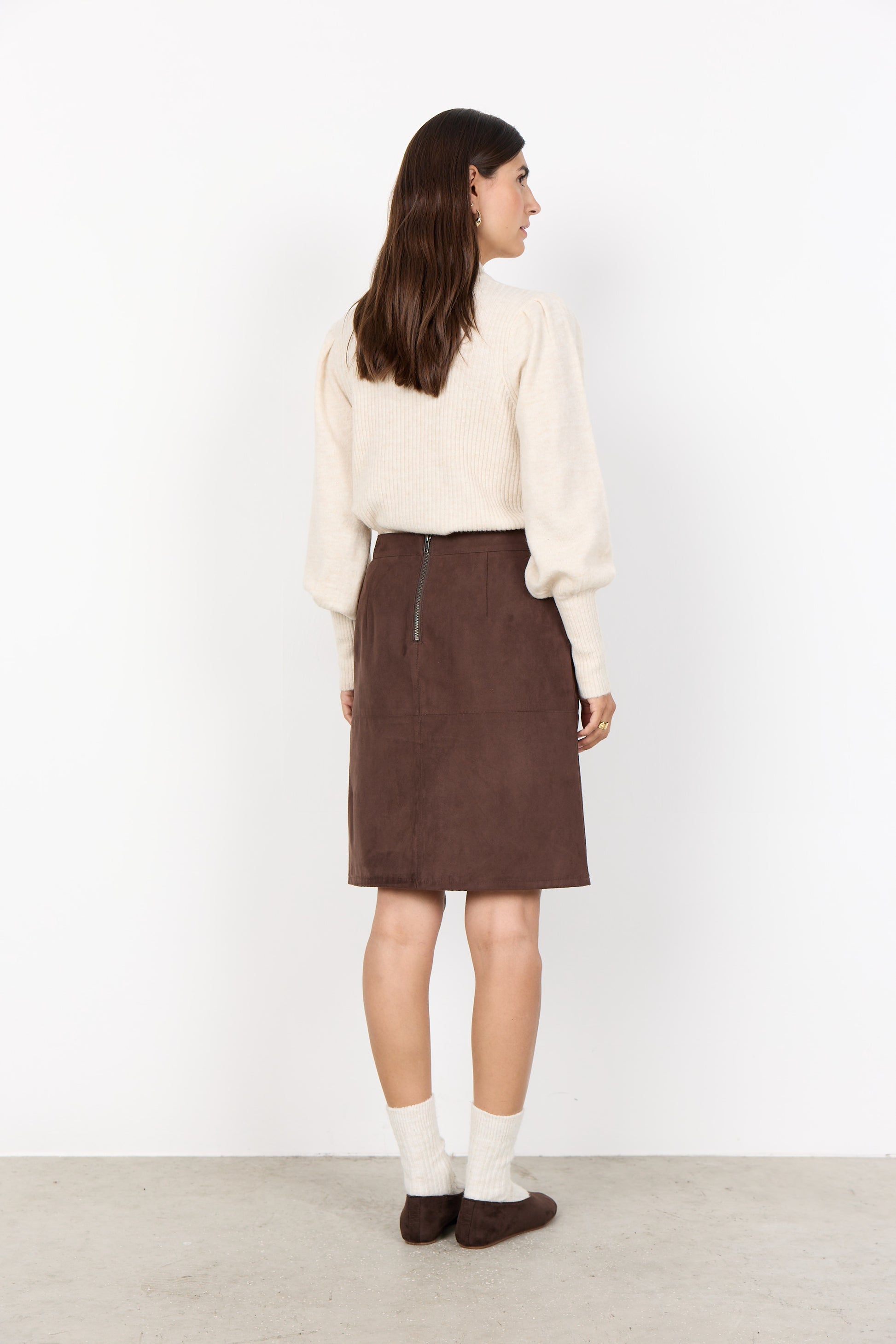 Elegant kjol med rak skärning och dold dragkedja baktill, accentuerad med subtila sömnadsdetaljer. Kombinera den med en figurnära topp eller en lös blus för en balanserad look.