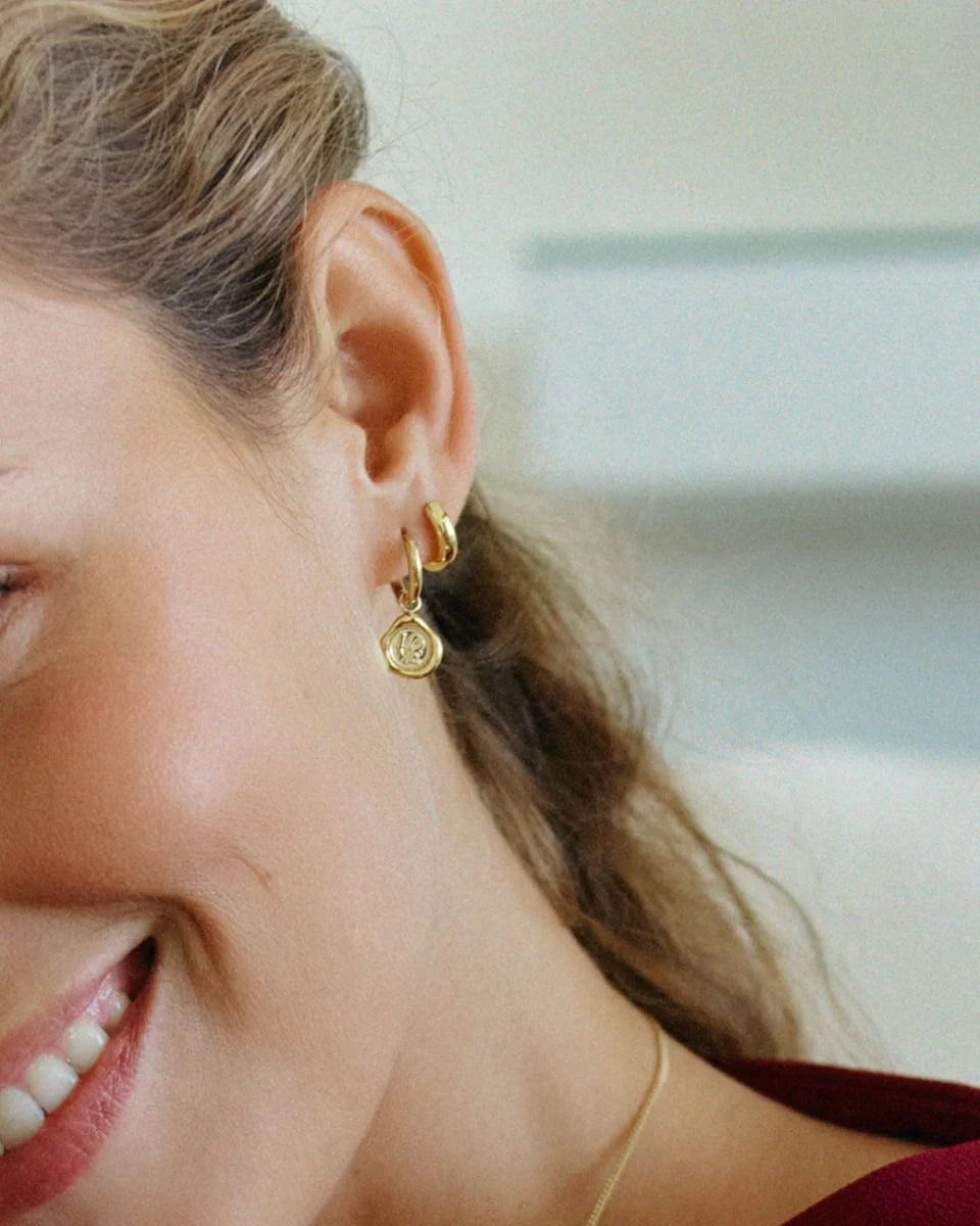 Juliga Holly är den perfekta klappen för att sprida kärlek lagom till helgerna. I seriens örhänge Hoops, finns i 14K guldplätering eller blankt stål, sitter en dekoration i form av ett sigill fäst direkt på kedjan. Passar fint ihop med det stämningsfulla halsbandet och armbandet. Bär det själv eller ge bort som gåva.