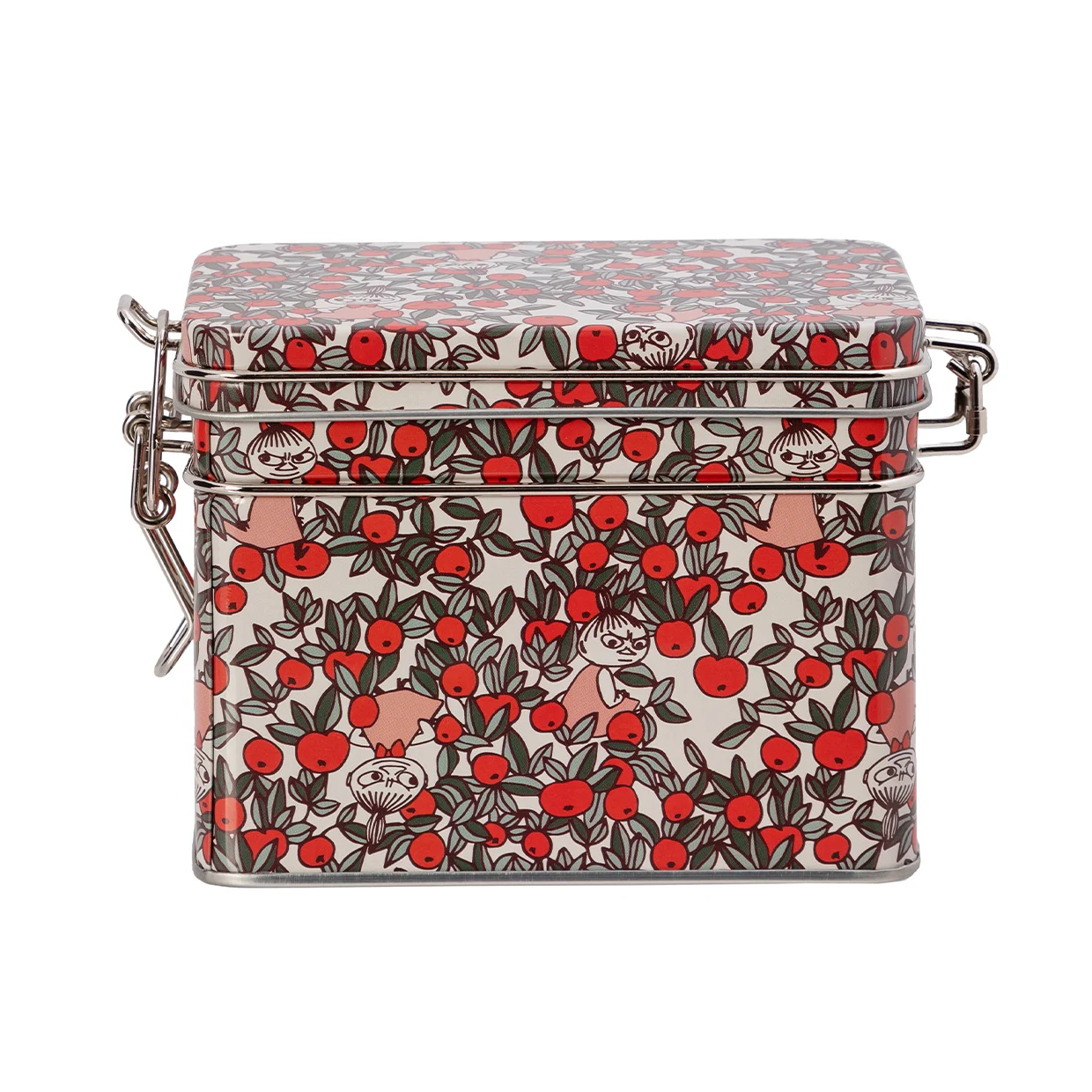 En teburk som dekoreras av ett roligt och intensivt färgglatt tranbärsmotiv med Lilla My här och där. Burken är tillverkad i plåt och den har ett lufttätt lock med spännlås. Här kan du förvara antingen te eller något annat praktiskt.