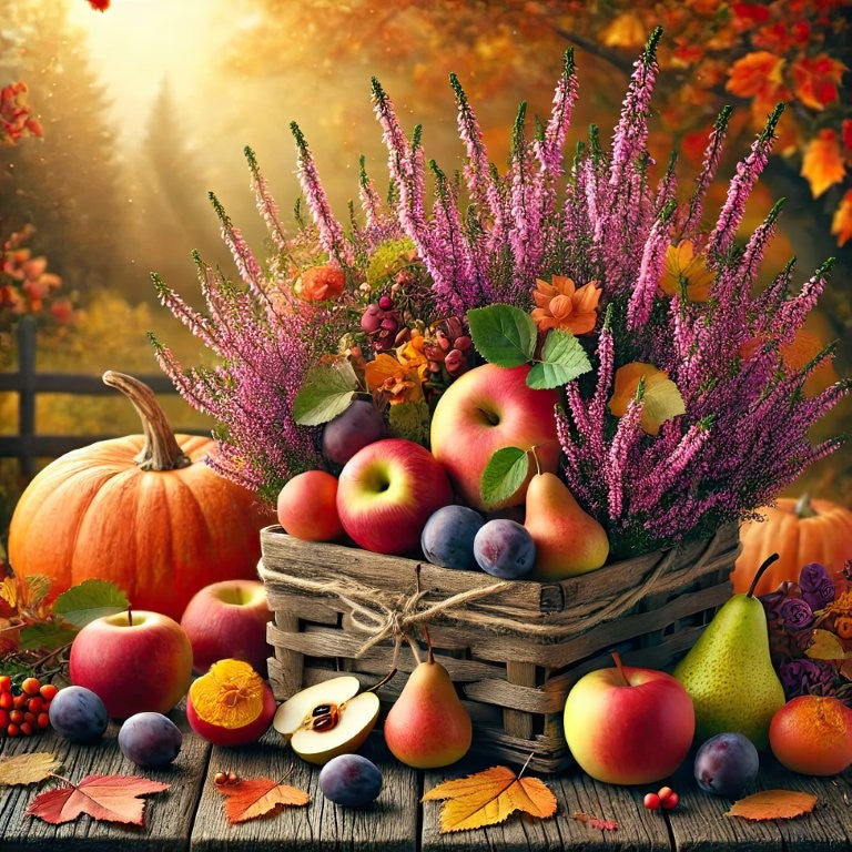 Fira skördetidens rikedom med en varm, inbjudande dukning där matservett med skördekorg och ljungmotiv står i centrum. Denna kombination av säsongens färger och former ger bordet en naturlig charm – perfekt för höstmiddagar, skördefester eller en mysig fika när löven börjar falla.