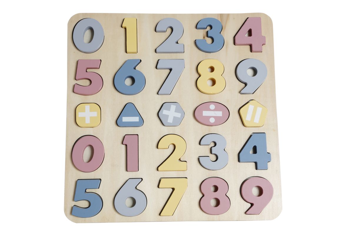 Pedagogiskt lärande med siffror och bokstäver. Den här uppsättningen erbjuder oändliga möjligheter. Träsiffror/bokstäver 2 x: 0-9 i milda färger samt basplatta i trä. Mått: 30 x 30 cm
