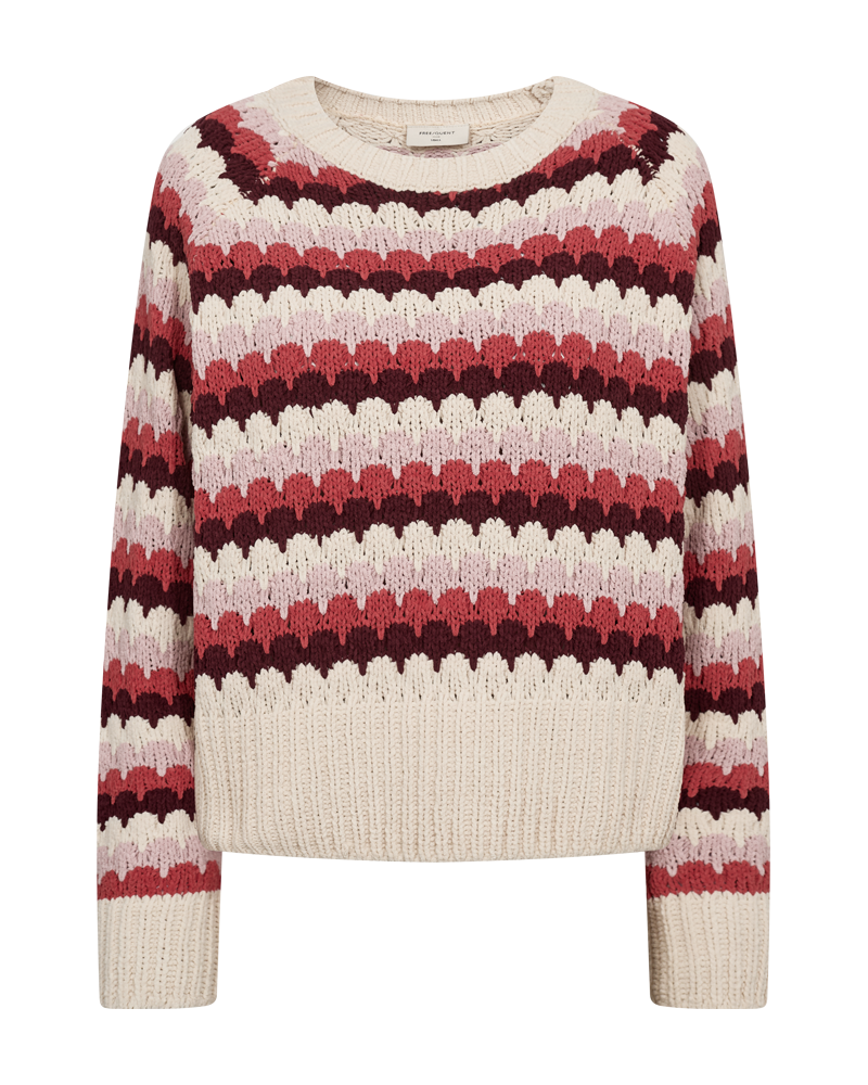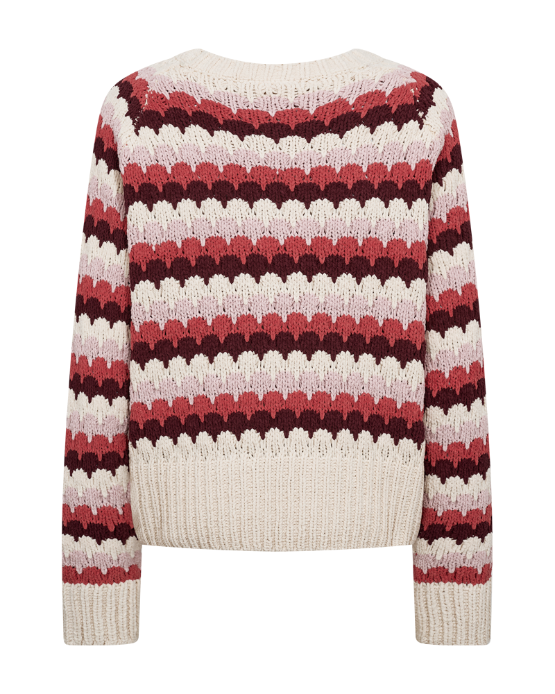 Fin tröja i supermjukt material med ett modernt, randigt mönster. Tröjan har en enkel silhuett med långa ärmar, rundad halsringning och en elegant, lös passform.